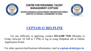 संरक्षण संशोधन आणि विकास संस्थेने (DRDO) सेंटर फॉर पर्सनल टॅलेंट मॅनेजमेंट (CEPTAM) ११ भरतीसाठीची ऑनलाइन नोंदणी प्रक्रिया वाढवली आहे. यापूर्वी अर्ज करण्याची अंतिम मुदत १ जानेवारी २०२६ (गुरुवार) होती, परंतु आता उमेदवार ११ जानेवारीपर्यंत अर्ज करू शकतील.